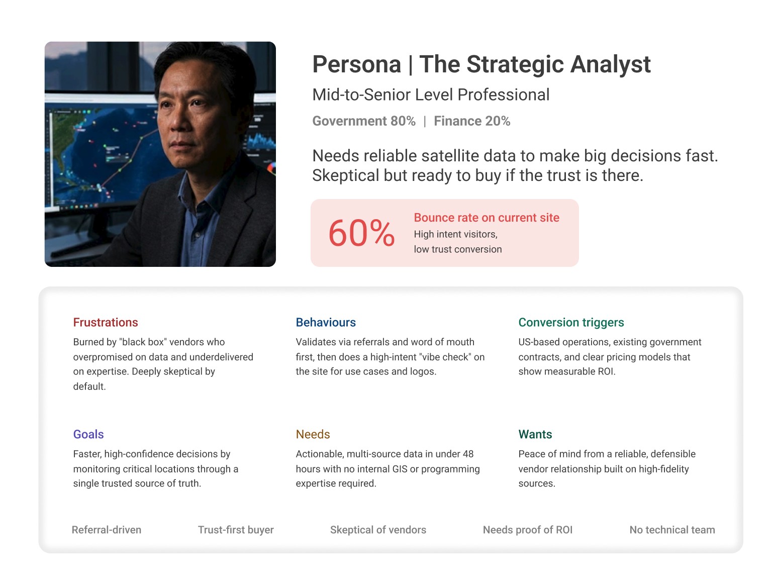 While the marketing site is currently entering development, our work has provided Ursa Space with a validated UX foundation and a clear roadmap for their digital presence. During this process, we also delivered a brand-aligned "one-pager" website on an accelerated timeline for a major industry conference. This ensured the team had a professional, high-impact presence in the field while the broader project moved toward completion.
